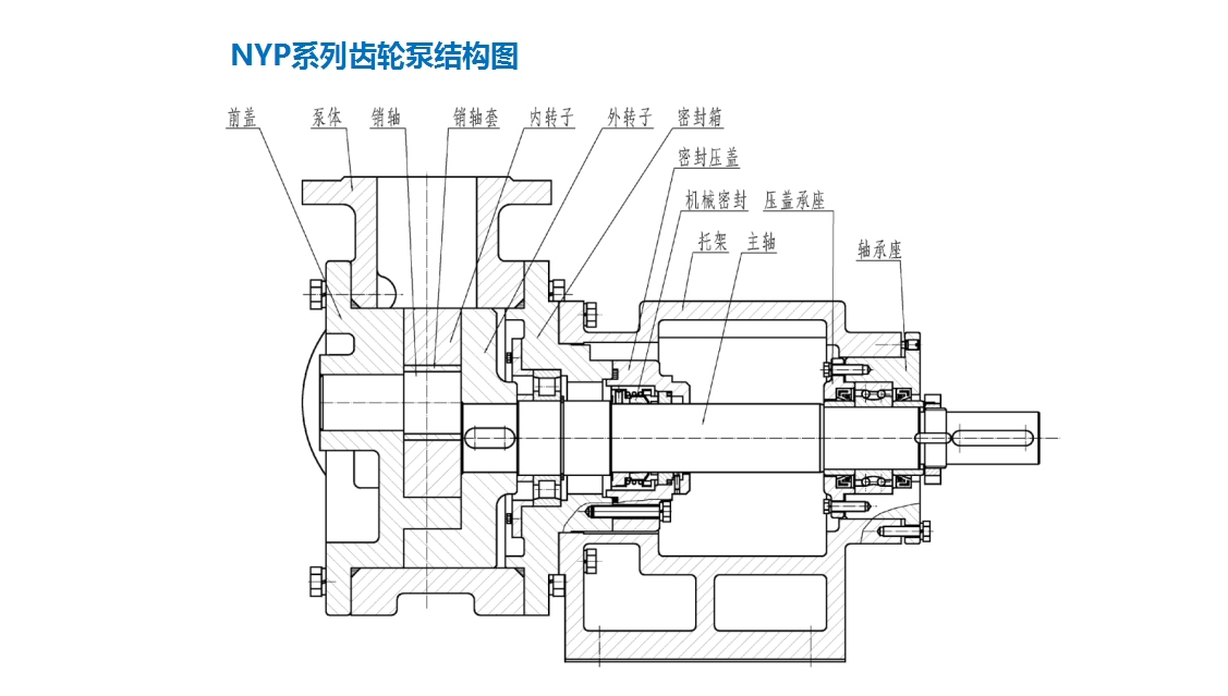 ■ 泵主要有內(nèi)外轉(zhuǎn)子、軸、泵體、前蓋、密封、軸承等組成。